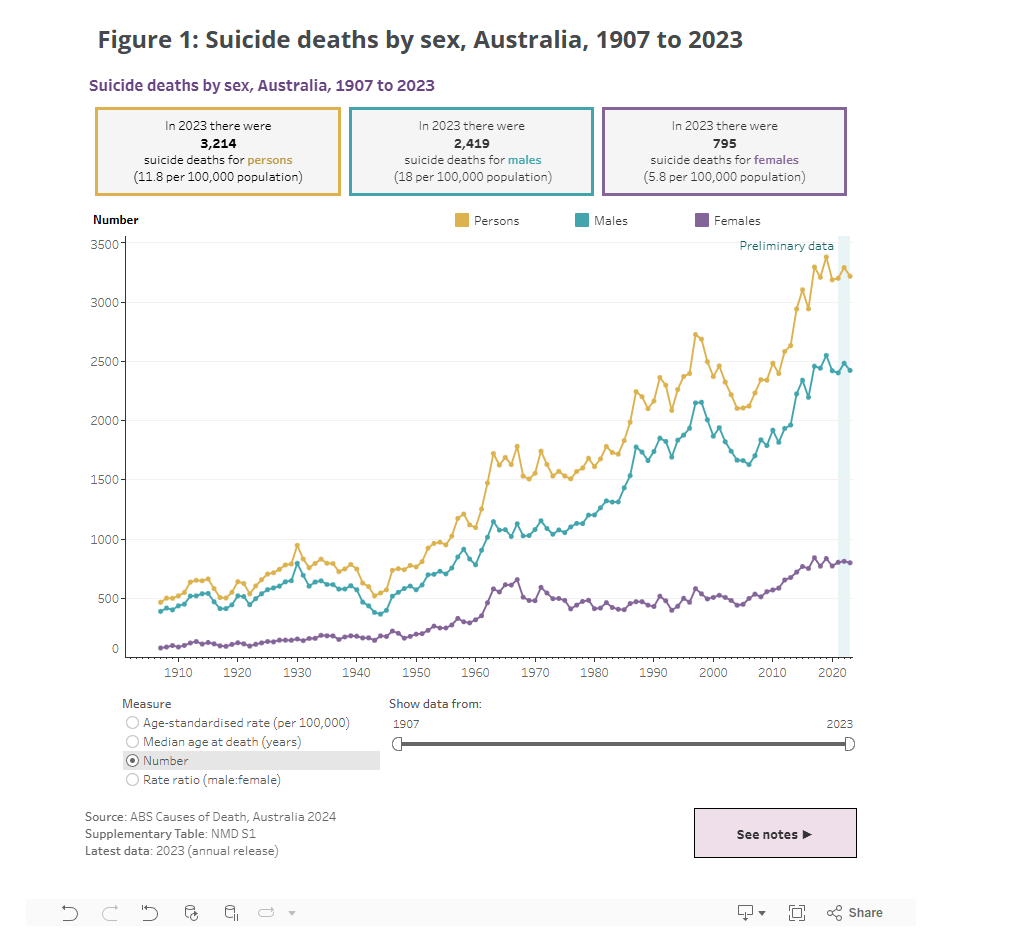 I was asked by a young 18yo man a couple of years ago to help him make it possible to discuss the suicide rate because no one believed him when he would post the stat’s…